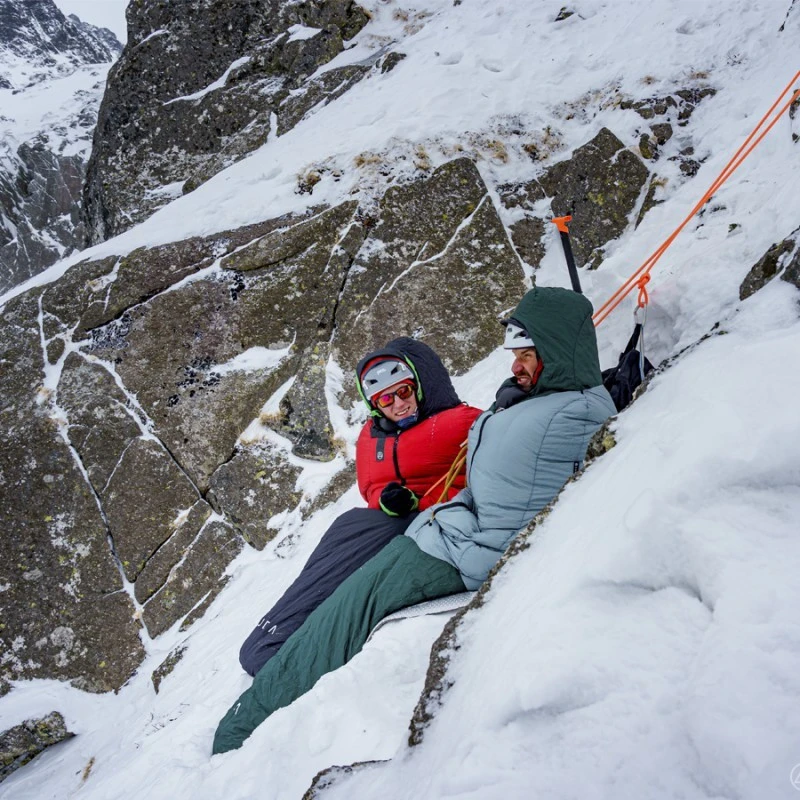 Il est garni avec 600 grammes de duvet dâoie polonais hydrophobe, de 800 cuin. Le duvet est rĂ©parti dans des compartiments en forme de H afin de limiter les dĂ©perditions thermiques. Sa demi-fermeture Ă©clair sur le devant permet une grande libertĂ© de mouvement, pour manger tout en restant au chaud par exemple. En Ă©tant plus courte, elle limite les dĂ©perditions thermiques. Munie dâun double curseur, elle permet de sortir une longe Ă l’extĂ©rieur afin de rester assurer durant la nuit.